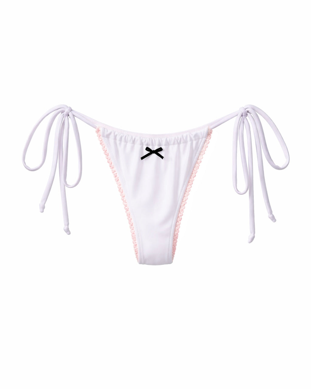 Get your hands on our new style: Alanna. This triangle top is your best bet for this summer. The satin black bows are the perfect balance between cute and sexy. This bikini offers ultra comfort with its fully adjustable thin straps, whilst flattering all body types. This triangle top and bottom features delicate pink lace all around. Say hi to the cutest fabric that you’ll wear as a second skin.